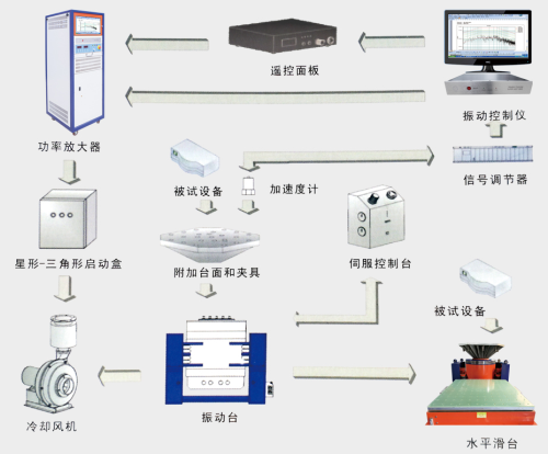 振動(dòng)臺(tái)系統(tǒng)有幾大部分組成功率放大器(簡(jiǎn)稱(chēng)功放)控制儀、振動(dòng)臺(tái)、附加臺(tái)面及夾具、制冷單元(有冷卻風(fēng)機(jī)、水冷裝置)、傳感器、水平滑臺(tái)。
