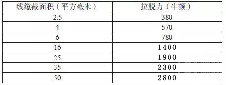 2.1.1 端子至線纜的拔出力:該測試是為了確保線束在車輛裝配過程及后續(xù)使用產(chǎn)生的作用力不會使線纜脫出端子,從而造成產(chǎn)品失效。該測試與供應(yīng)商的壓接參數(shù)和線纜接插件匹配度有高度相關(guān)性。具體力學性能要求見表1。