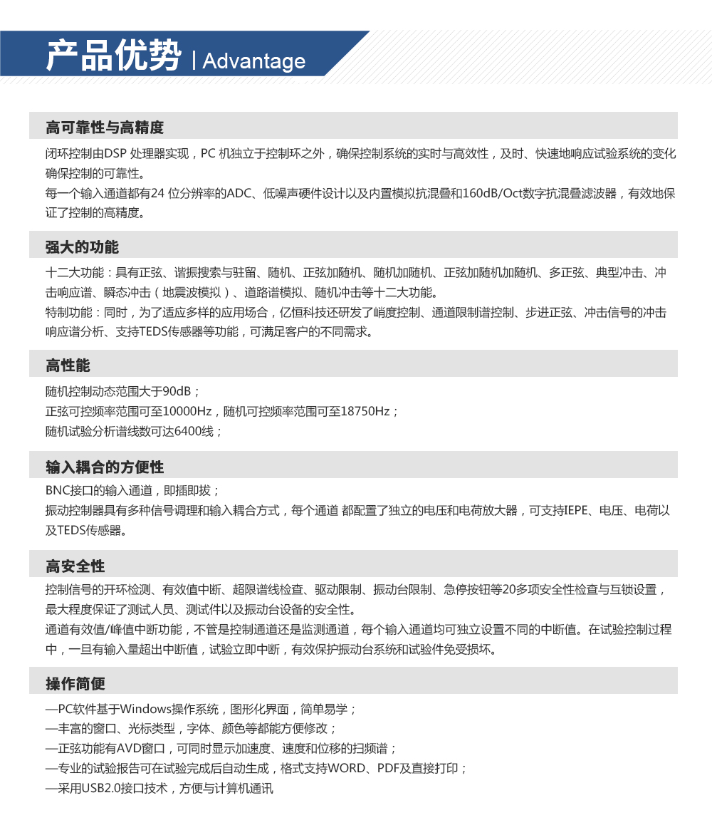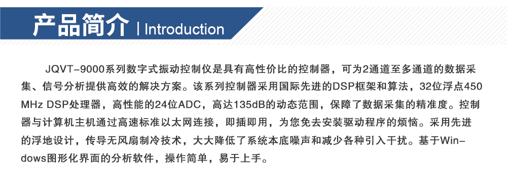 用途:JQVT-9000系列數(shù)字式振動(dòng)控制儀具有高性價(jià)比的控制器,可為2通道至多通道的數(shù)據(jù)采集、信號(hào)分析提供高效的解決方案。該系列控制器采用國際先進(jìn)的DSP框架和算法,32位浮點(diǎn)450 MHz DSP處理器,